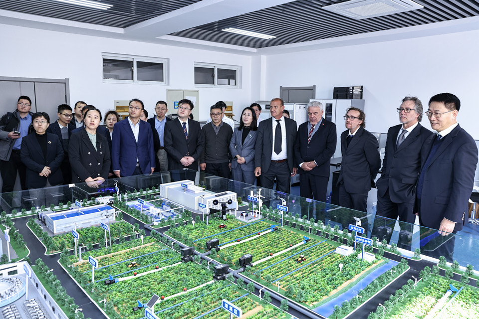 座谈会后,高访团组一行实地参观了学校数字草业实验室、现代智能农机装备展厅等,详细了解学校在智慧草业、农业智能装备等领域的科研进展和实验室建设情况。