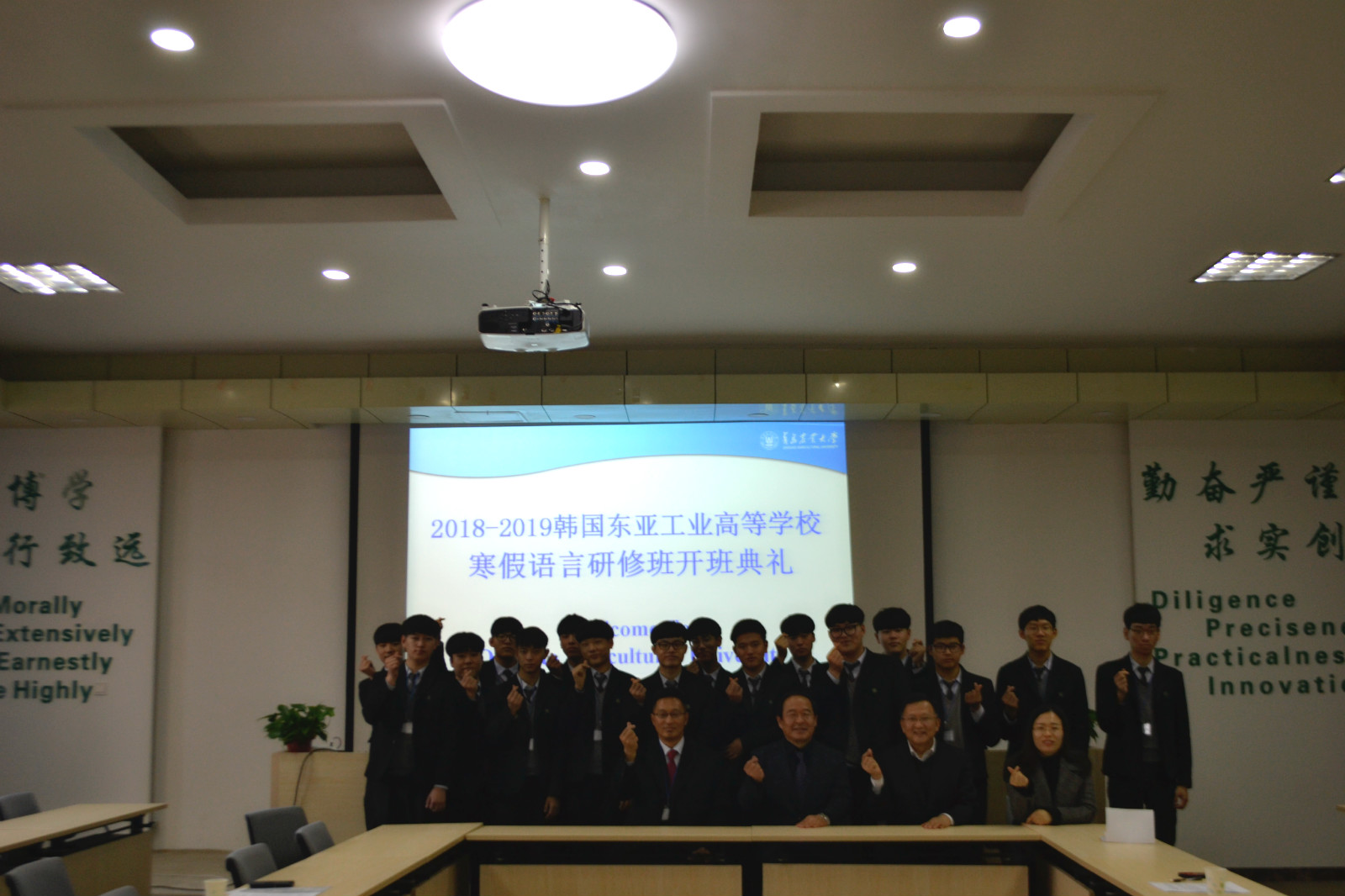 12月24日,韩国东亚工业高等学校寒假语言研修班开学典礼在专家楼举行,韩国东亚工业高等学校教育部部长闵庚禄、永利yl23411官网处长郑丹出席了开学典礼,永利yl23411官网、韩国东亚工业高等学校相关工作人员参加了开学典礼。