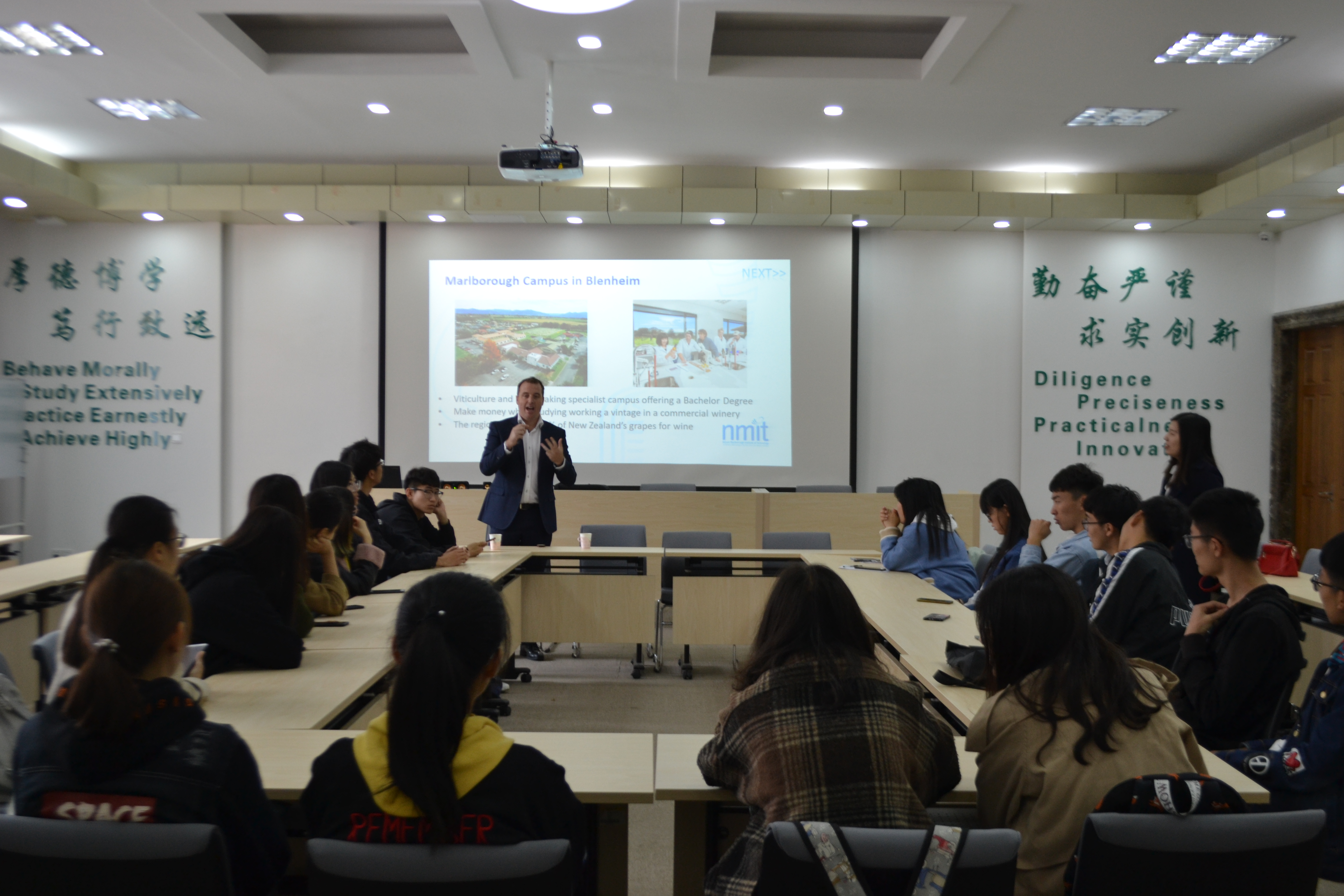 会谈结束后,Will Tregidga为永利yl23411官网食品科学与工程学院葡萄与葡萄酒工程专业学生做了“3+1.5”双学位项目宣讲会,详细介绍了两校双学位培养项目的具体内容、政策以及留学注意事项等。