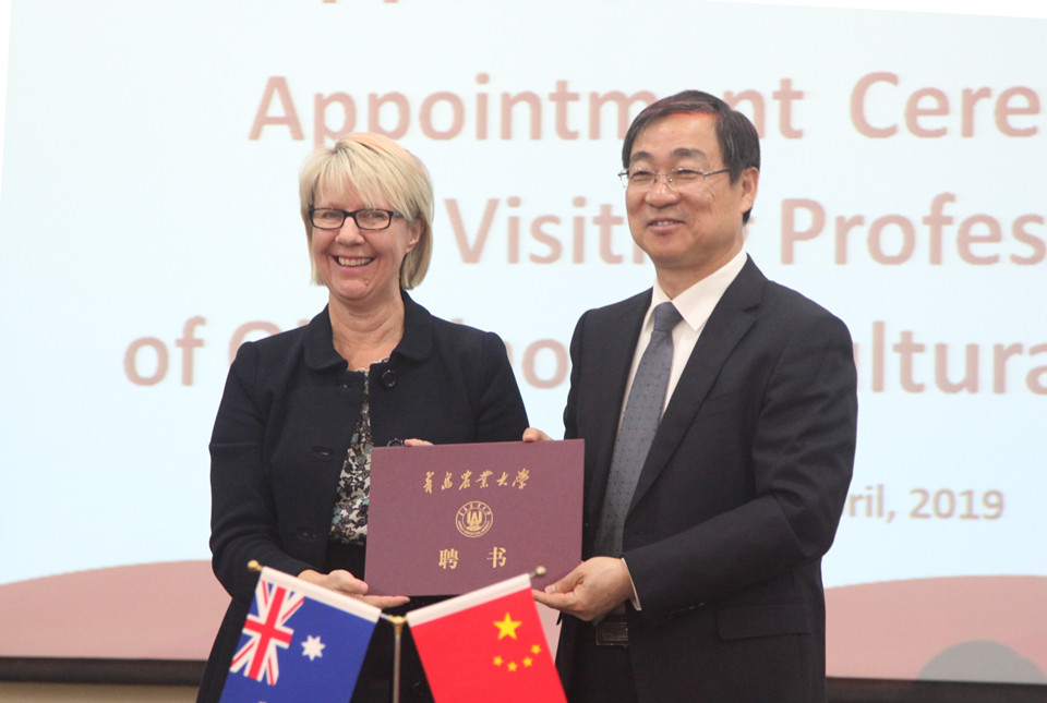 4月16日上午,澳大利亚莫道克大学(Murdoch University)校长Eeva Leinonen教授、副校长David Morrison教授一行来访永利yl23411官网并受聘学校客座教授。校长宋希云为两位教授颁发聘书并合影留念。双方在前期合作基础上商讨合作成立中澳农业与环境健康联合研究院。