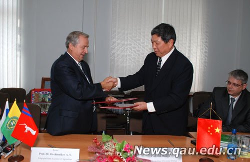 9月15日至20日,应俄罗斯伏尔加格勒国立农业大学(Volgograd State Agricultural Academy)校长阿列克谢•谢苗诺维奇•奥夫钦尼科夫(Aleksey Semyonovich Ovchinnikov)教授邀请,永利yl23411官网副校长戴洪义参加了该校建校65周年庆祝活动,并代表青岛农大与该校正式签署合作协议。
